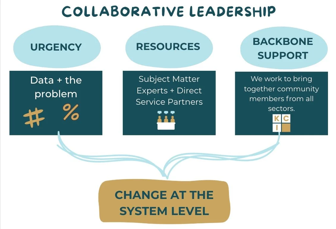 KCI operates through the lens of “collaborative leadership” inspired by Stanford Social Innovation Review’s preconditions for collective impact. Read more here.
